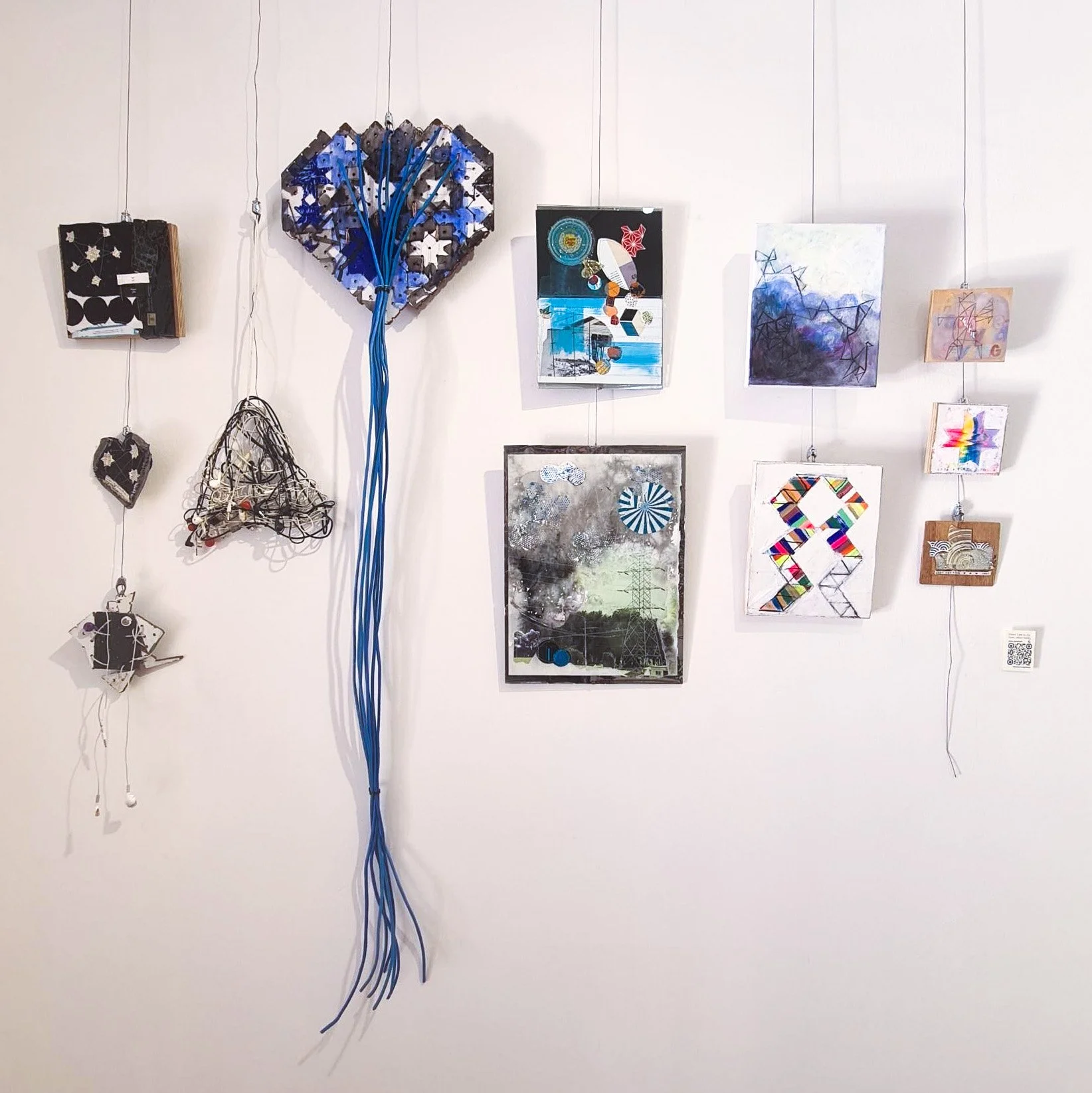 Break Up, 19 x 38cm, assemblage: cables and pegboard, $75