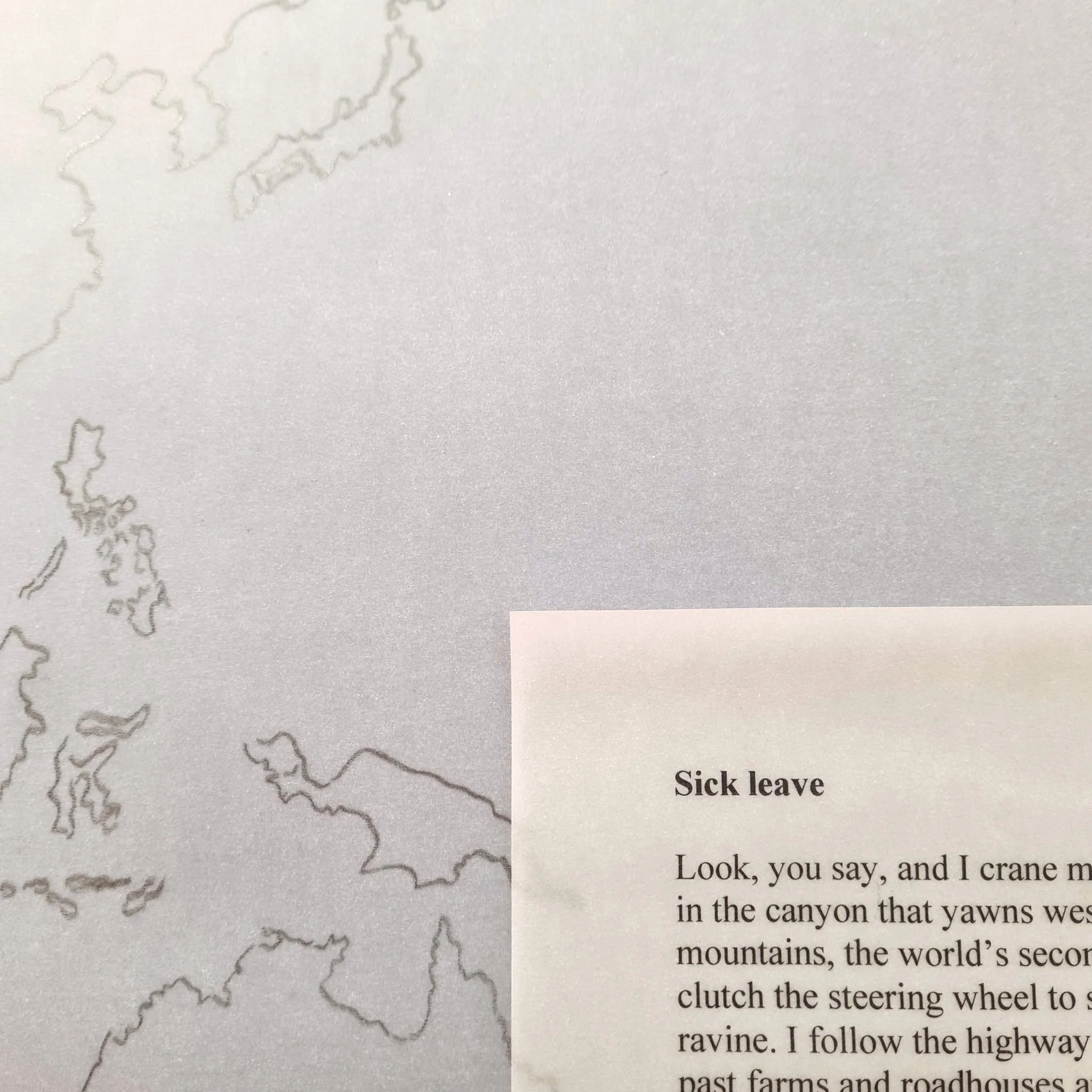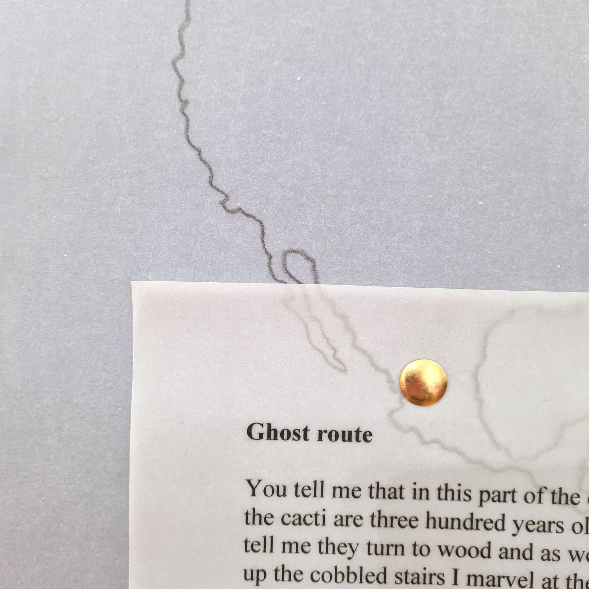 I believe we are shaped by our memories. But I also believe that our memories occupy a space somewhere between fact and fiction. To make Untitled (memory aid) I traced a map of the world, an attempt to define landscapes that I know and those I still dream about. Over a week at my parents’ house in Perth, the city in which I grew up but haven’t lived for two decades, I composed six short works of autofiction – pieces that can also be read as prose photographs – based on memories that I return to. Each one is addressed to a person I care about. Each is ordinary, unremarkable. An exchange. An observation. Or a minor sequence of events. By pinning them to locations where they unfolded, on the map I traced, I’m trying to plot the changing coordinates of my emotional geography and where I sit in relation to it right now.